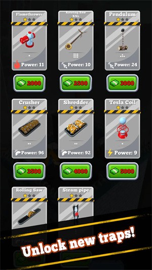 防御体系包含八大类共40余种可升级装置,每类陷阱都拥有独特的进化树和协同效应。火焰喷射器可与油渍地砖形成燃烧连锁,而特斯拉线圈能强化电磁类陷阱范围。玩家需要根据僵尸类型的变化实时调整防御重心,这种动态应对过程创造出丰富的战术组合。