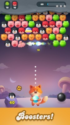 1.泡泡发射:玩家可以通过滑动屏幕,调整发射角度,精准发射泡泡。游戏提供了辅助瞄准线功能,帮助玩家更好地掌握发射轨迹。