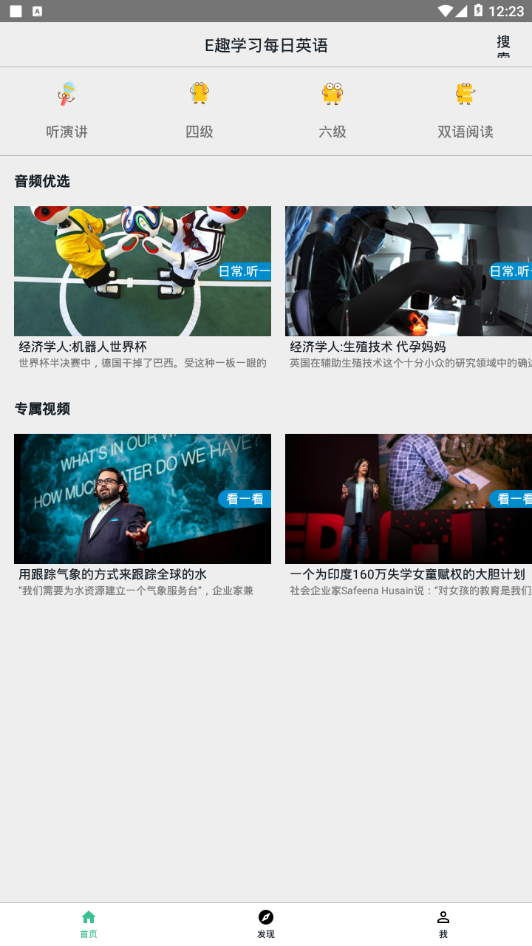 E趣学习每日英语app是一款专为英语爱好者设计的智能学习工具,通过AI技术精准分析用户学习习惯,提供个性化学习方案。软件整合了从基础语法到高阶听力的全阶段内容,包含超过10万+精选资源,涵盖VOA、BBC等权威素材。独特的智能推荐系统能动态调整学习路径,每日推送适合用户水平的单词、语法解析及情景对话,让碎片化时间转化为高效学习机会。无论是备考冲刺还是日常提升,都能获得沉浸式学习体验。
