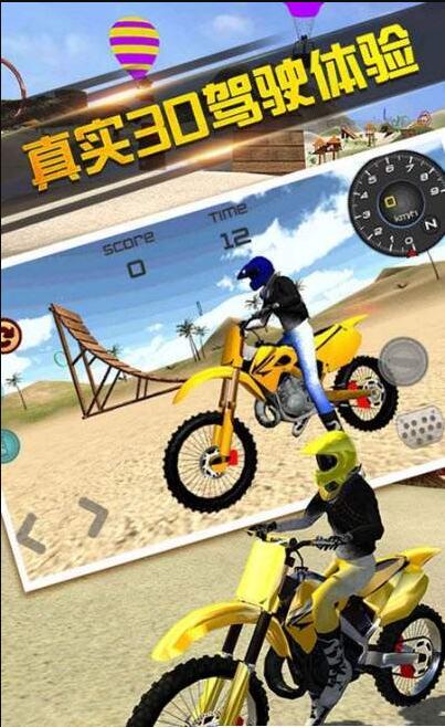 真实刺激的赛车竞速体验,游戏采用先进的物理引擎,完美还原了摩托在沙地、山地等不同地形上的驾驶感受,逼真的场景细节让沉浸感倍增。