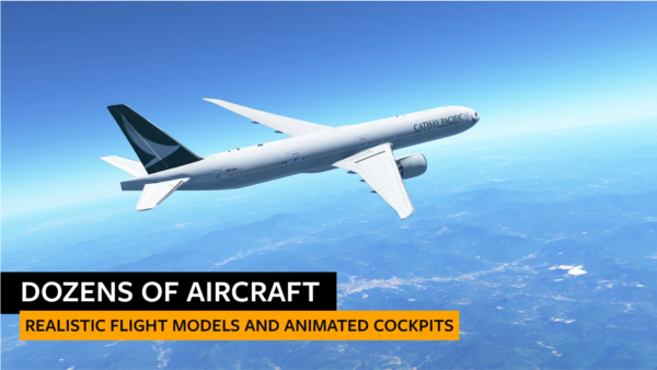 •多个区域具有高清卫星图像、精确地形和带有精确跑道和滑行跑道布局的主要机场。这些区域不仅视觉效果惊人,还包含真实的导航数据,让您体验专业飞行员的视角。