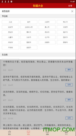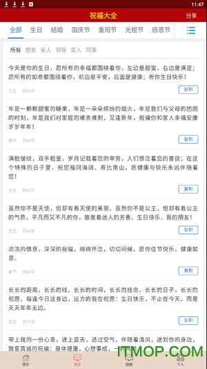 在中国传统文化中,每逢佳节为亲朋好友送上真挚祝福是一项重要习俗。这款app精心收录了从春节、元宵节、端午节到中秋节、国庆节等传统节日的特色祝福语,每一条祝福语都蕴含着对美好生活的期许,传承着中华文化的精髓。同时,随着全球化发展,情人节、父亲节、母亲节等西方节日也逐渐融入中国人的生活。app与时俱进地收录了这些新兴节日的祝福语,满足现代人的多元化需求。无论是传统的纸质贺卡,还是现代的短信、邮件祝福,这款app都能为您提供最合适的祝福语选择。