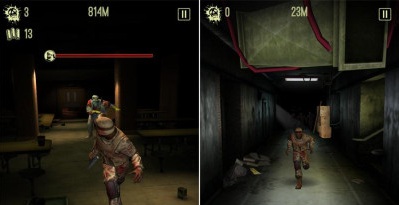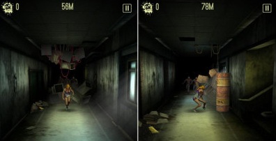 游戏并不特意在画面上强调高大上,但也不会偷懒而显得过于简陋,启动游戏后的一小段过场动画剧情,在故事的叙述上非常清晰,在气氛的渲染上也相当刺激,僵尸们凶神恶煞的向你扑来,也足以表达出游戏最为重要的跑酷核心,在插画的表现上,僵尸们按住人类食肉的场景也足够震撼人心,游戏的总体环境并不恐怖,但是营造出的惊悚感还是挺强的,而且正式游戏中僵尸追捕你的刺激感也让人不言而喻,特别是当你穷途末路的时候,僵尸们齐齐扑倒你那一刻配合那一段诡异的音乐,还真是有点让人不寒而栗。游戏中的光影效果和场景细节处理得相当到位,比如走廊尽头若隐若现的僵尸身影,或是转角处突然出现的道具闪光,都为游戏增添了不少视觉冲击力。