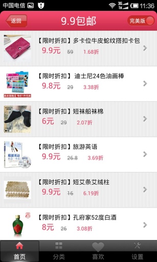 1、超值折扣大汇集,限时秒杀、限量抢购、9.9元包邮、优惠促销等活动实时更新,让你不错过任何优惠机会;