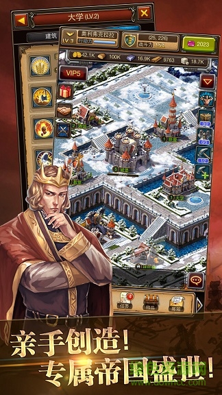 亲手筑造王城荣耀——高度自由的城建系统允许玩家按照自己的战略构想规划领地。从农田作坊到军事要塞,每一处建筑都影响着帝国的发展方向;