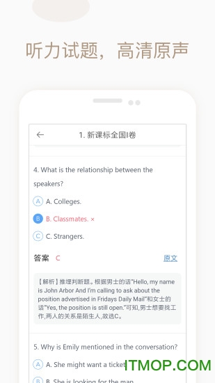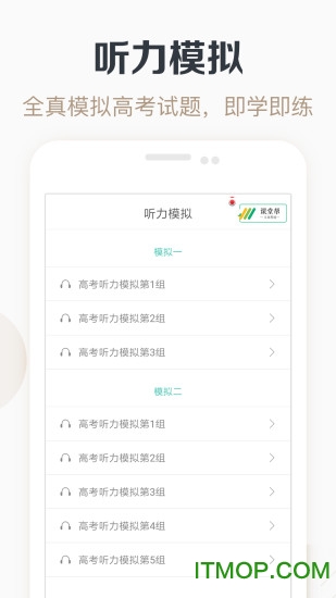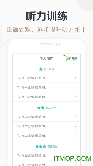 高考英语听力是一款专为高中生设计的英语听力训练软件,旨在帮助用户高效备考高考英语听力部分。软件提供海量真题模拟题库,涵盖全国各省市历年高考听力试题,并配有专业发音和智能评分系统。通过科学的训练模式,用户可针对性提升听力理解能力、答题速度和应试技巧。软件支持离线下载、倍速播放、错题重听等功能,满足不同学习场景需求。界面简洁易用,学习数据可视化分析,帮助用户查漏补缺,是高考英语听力备考的得力助手。