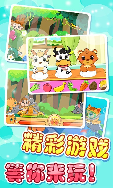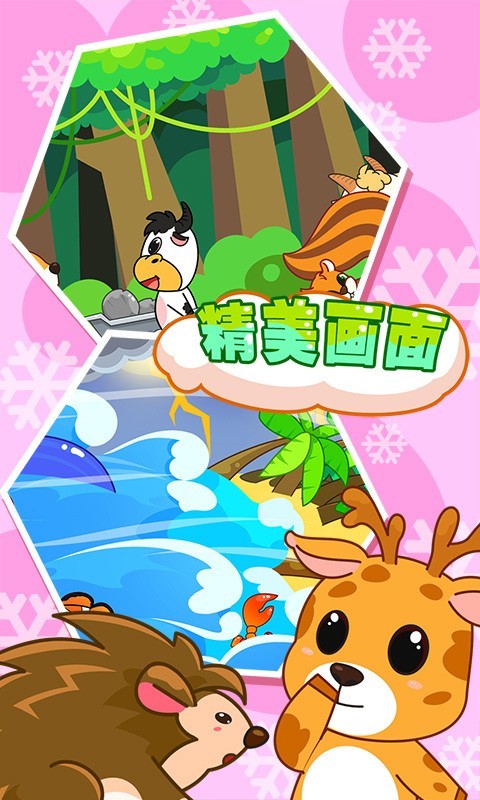 4.可爱的游戏画风:游戏采用卡通风格设计,色彩鲜艳,动物形象可爱,非常适合儿童。精心绘制的场景细节和活泼的背景音乐,共同营造出一个充满童真的动物世界。