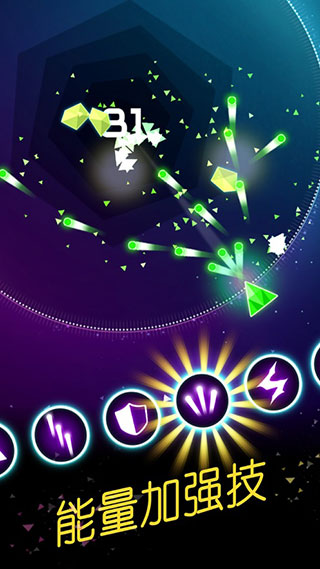 核心目标是拦截从环形中心涌出的能量方块,不同颜色的方块对应特殊效果,需要优先击破高危目标;