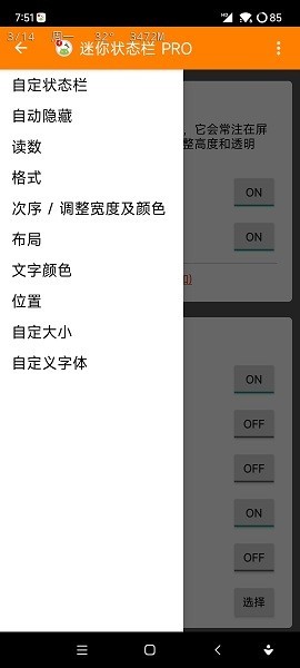 提供全方位的自定义选项,包括字体大小调节、颜色设置、项目排序、位置调整、透明度控制以及布局修改等功能。这些功能让您可以完全掌控状态栏的每一个显示细节,打造出独一无二的个性化界面。