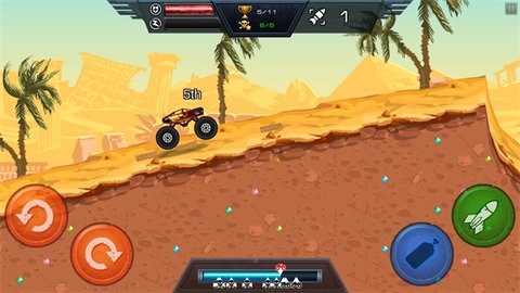 - 游戏提供多款造型独特、性能各异的疯狂卡车,每辆卡车都有专属的特点和技能,玩家需要根据赛道特点选择最适合的座驾!