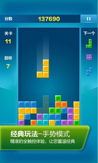 俄罗斯方块的经典马拉松玩法,经过精心优化后完美适配移动设备。游戏采用全触控操作,只需单指滑动即可精准控制方块移动和旋转,操作流畅度达到前所未有的水平。特别设计的物理引擎让方块下落更加自然,碰撞检测更加精准。游戏还保留了经典的计分系统和难度递增机制,让老玩家能够重温童年记忆的同时,也能感受到技术革新带来的全新体验。