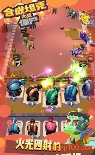 合成坦克大战僵尸是一款极具策略性的塔防类手游,玩家将置身于一个被僵尸入侵的末日世界。游戏中,你需要通过合成升级坦克来抵御源源不断的僵尸进攻。随着关卡推进,会出现体型巨大的精英僵尸,给玩家带来更大挑战。游戏采用卡通3D画风,搭配炫酷的技能特效,为玩家带来紧张刺激的战斗体验。你可以收集各种材料升级坦克,解锁强力武器,体验酣畅淋漓的战斗快感。快来加入这场保卫战,用你的智慧与勇气击退僵尸大军!