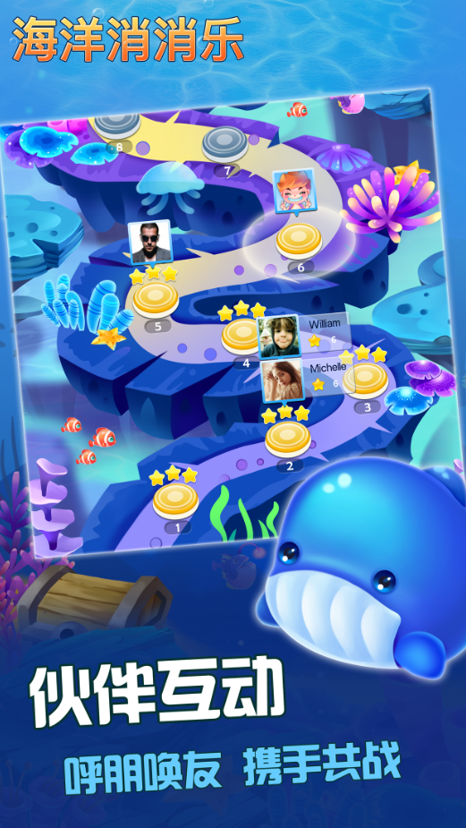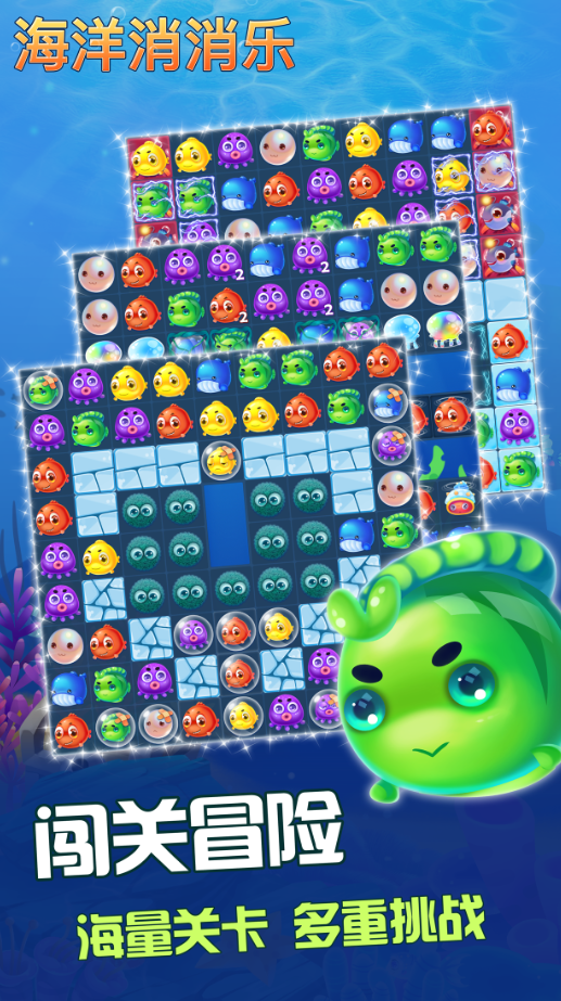 《海洋消消乐》是一款以蔚蓝海洋为主题的休闲消除游戏,将玩家带入充满阳光与欢笑的奇幻海底世界。游戏采用清新明快的卡通画风,600多个精心设计的关卡让玩家在消除小鱼的过程中体验深海探险的乐趣。从五彩斑斓的珊瑚礁到神秘的海底沉船,每个场景都充满惊喜。独特的海洋生物角色如调皮的小浣熊、憨厚的北极熊大叔为游戏增添生动趣味,配合轻松愉悦的背景音乐,打造出令人沉浸的休闲体验。多种创新玩法和丰富道具系统让传统消除游戏焕发全新活力。