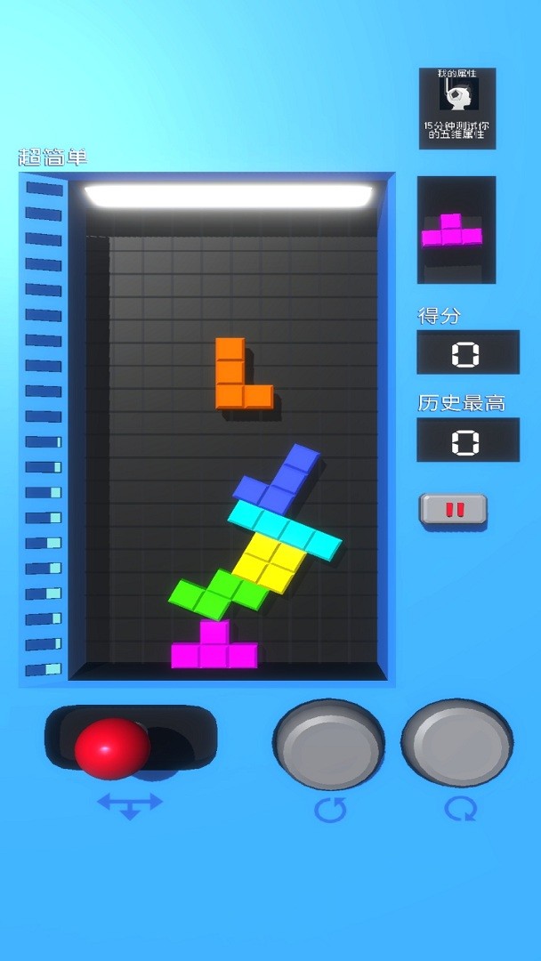 真实物理引擎的最新版是一款颠覆传统的俄罗斯方块游戏,采用先进的3D物理引擎技术,为玩家带来前所未有的沉浸式体验。游戏不仅保留了经典俄罗斯方块的核心玩法,还通过真实的物理碰撞效果和重力系统,让方块的下落、旋转和堆叠更加符合现实规律。精心设计的超多关卡挑战搭配独特的操作方式,既考验玩家的反应速度,也要求策略布局能力。硬核的游戏难度将满足追求挑战的玩家,而丰富的特殊模式和全球排行榜则增添了更多竞技乐趣。这款游戏将带你进入一个既熟悉又新奇的俄罗斯方块世界。
