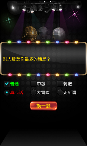 真心话大冒险是一款专为聚会爱好者设计的趣味应用,它能瞬间点燃派对氛围,让朋友间的互动更加精彩纷呈。这款应用内置多种创新玩法,从经典的摇一摇抽题到创意十足的轮盘挑战,再到紧张刺激的击鼓传花模式,每一种都能带来不同的欢乐体验。应用精心准备了近800道题目,分为普通、中等和刺激三个级别,无论是同学聚餐、公司团建还是单身派对,都能找到恰到好处的游戏强度。现在就下载体验,让你的聚会告别冷场,充满欢声笑语!