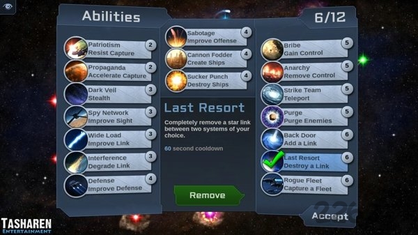4.游戏提供多样化的技能系统,包括防御型、进攻型和混合型技能。最特别的是可以重塑星系的能力,玩家可以创造或摧毁超空间航线,改变整个战局。