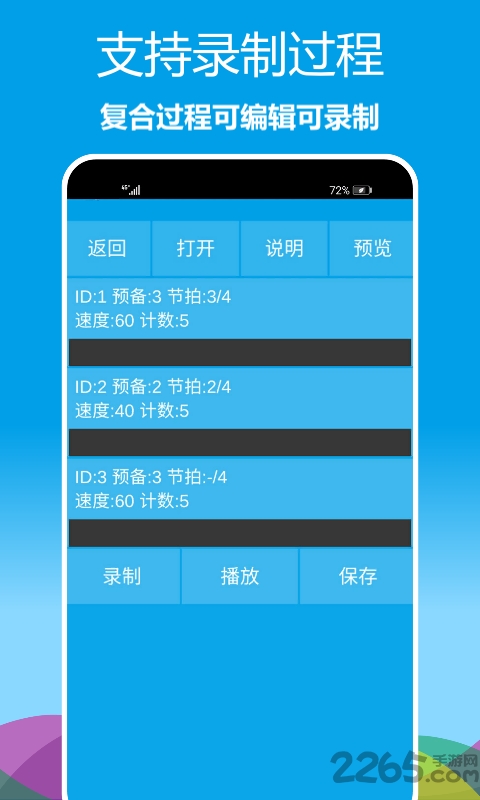 6、个人节奏可储存:支持创建个人节奏库,最多可保存100组自定义节奏,并支持后台持续运行。