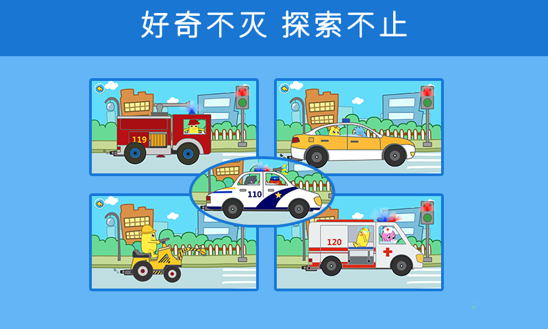 1、高清彩图,提高记忆力:游戏采用精心绘制的卡通风格彩图,每种车辆都配有醒目的色彩搭配,能够有效吸引宝宝注意力,通过重复记忆帮助孩子快速识别不同车型。2、界面清晰,不伤眼:所有界面元素都经过专业护眼设计,采用柔和的色彩对比度和适当大小的图标,确保长时间游戏也不会造成视觉疲劳。3、发音清晰且标准:由专业播音员录制的标准发音,帮助宝宝建立正确的语言认知,每个车辆名称都会重复朗读,强化记忆效果。4、寓教于乐,引导宝宝自己学习:通过趣味互动设计激发孩子自主探索欲望,在完成拼图、配对等小游戏的过程中自然掌握知识。