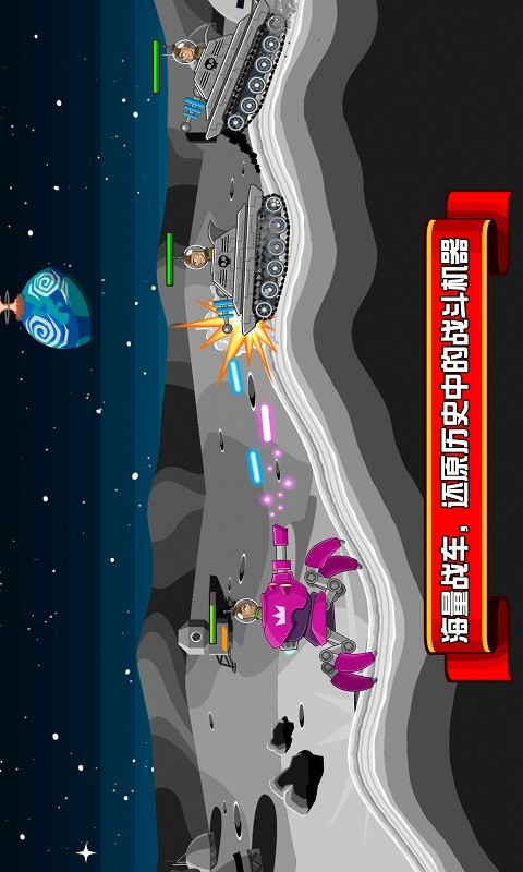 1、游戏包含多种创新挑战模式,玩家将置身于即时作战状态,与敌人展开激烈对抗,体验真实的战场氛围。2、玩家可以驾驶各式坦克在战场上驰骋,向敌人阵地发射猛烈炮火,感受将敌人打得溃不成军的快感。3、游戏考验玩家的操作技巧和战术思维,需要合理运用地形和道具,才能在混战中存活到最后,成为最终赢家。