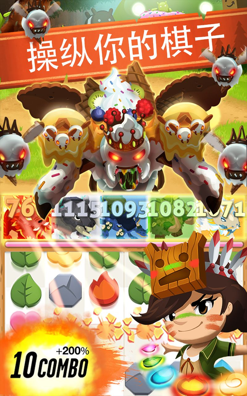 • 独创的宝石消除战斗系统,将传统三消玩法与策略对战完美融合,每次消除都将触发不同的技能效果。