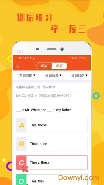 3.内置丰富的互动练习,包含填空、改错、翻译、听力等多种题型,系统自动批改并给出解析。