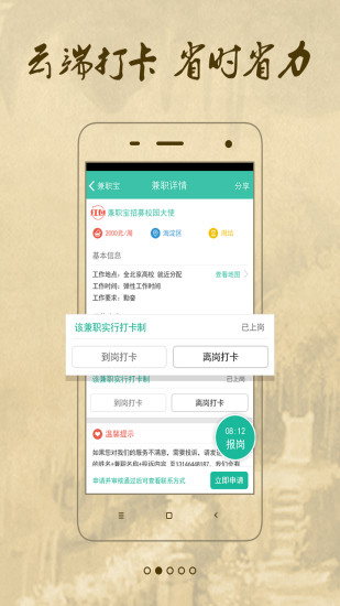 兼职宝是一款专为求职者打造的智能兼职招聘服务平台,致力于为用户提供安全、高效、高薪的兼职机会。通过创新的技术手段和贴心的功能设计,兼职宝让找兼职变得简单又有趣。无论你是学生党、上班族还是自由职业者,都能在这里找到适合自己的兼职工作。
