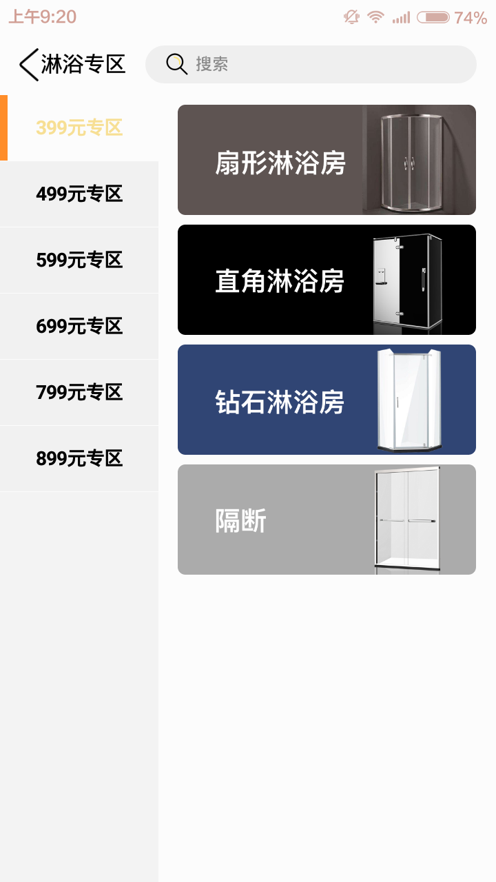 3.吊顶专区,卫浴专区,淋浴房隔断应有尽有:按空间划分的15个专业导购专区,配备AI搭配建议系统,智能推荐最适合户型的产品组合方案。