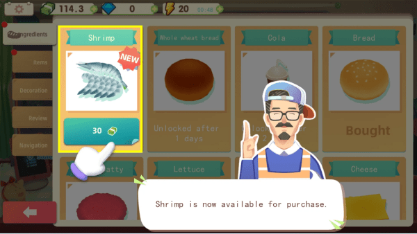 1. 治愈画风:卡通渲染的食材和角色设计,视觉体验温馨可爱。 2. 成长成就感:从街边小摊到连锁店帝国,见证每一步发展。 3. 策略深度:平衡成本、售价和顾客满意度,考验经营智慧。 4. 收集乐趣:解锁稀有食材和成就,满足收藏爱好者需求。 5. 离线收益:即使关闭游戏,店铺仍持续产生部分收益。 6. 低门槛高上限:简单点击操作,但高阶玩法需要精密计算。