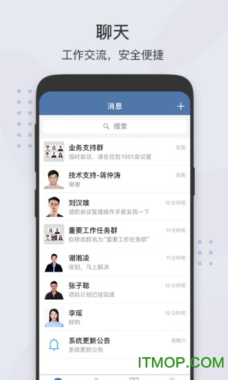 会议管理功能实现报名签到一键完成,简化会务流程;安全加密的即时通讯功能,保障工作交流安全便捷;可视化组织架构的通讯录,让人际关系一目了然;工作圈功能打造政务专属社交平台,促进经验分享;智能任务管理系统,助力工作统筹规划,提升执行效率。