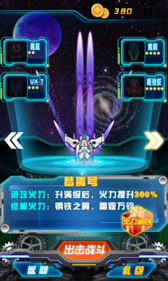 这是一款融合角色养成、飞行射击与超炫动作元素的创新游戏,玩家可以收集装备强化战机属性,体验多样化的成长系统。2.游戏中需要精准控制战机飞行方向,同时发射子弹消灭敌人,还能抢夺特殊技能道具来获得战斗优势。3.超炫技能系统包含全屏爆破、波涛千里、子弹变宝等多种特效,每个技能都有独特的视觉效果和战斗作用。4.游戏采用经典关卡逆袭模式,配合高清画质和震撼音效,带来持续不断的刺激体验。