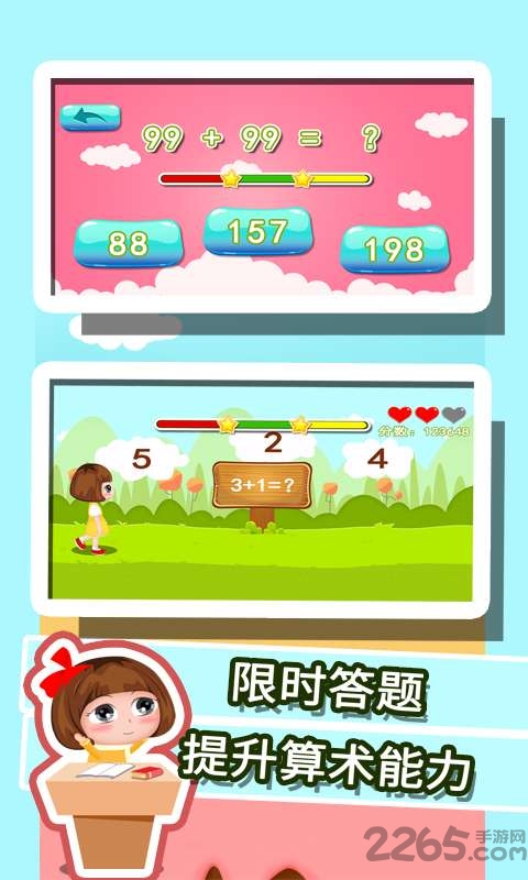 《儿童加减法数学游戏》是一款专为3-8岁儿童开发的数学学习应用,旨在通过游戏化的方式帮助孩子掌握基础的加减法运算。游戏内容丰富,包含多种趣味关卡和挑战模式,适合不同年龄段的孩子。游戏采用生动可爱的卡通形象和色彩鲜明的画面,吸引孩子的注意力,激发他们的学习兴趣。通过逐步提升的难度设计,孩子可以在轻松愉快的氛围中提高计算能力,培养逻辑思维和解决问题的能力。游戏还设有奖励机制,鼓励孩子不断挑战自我,让学习变得更加有趣和有效。
