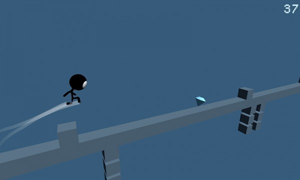 游戏中,火柴人不断向前狂奔,玩家需要点击屏幕左键或是右键来进行跳跃或是翻转道路,以此躲避障碍:简单直观的操作方式让游戏容易上手,但想要精通却需要大量练习;