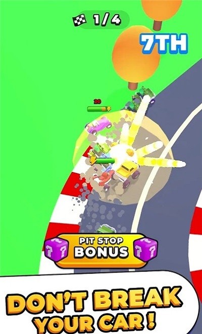 2、捷径探索机制:部分看似坚固的护栏实际上可以被撞毁,从而进入隐藏的捷径路线。但撞击会消耗宝贵的装甲值,玩家需要评估当前状态决定是否冒险。选择常规赛道稳妥前进,还是冒险抄近道争取优势,这种决策过程让每场比赛都充满变数和惊喜。