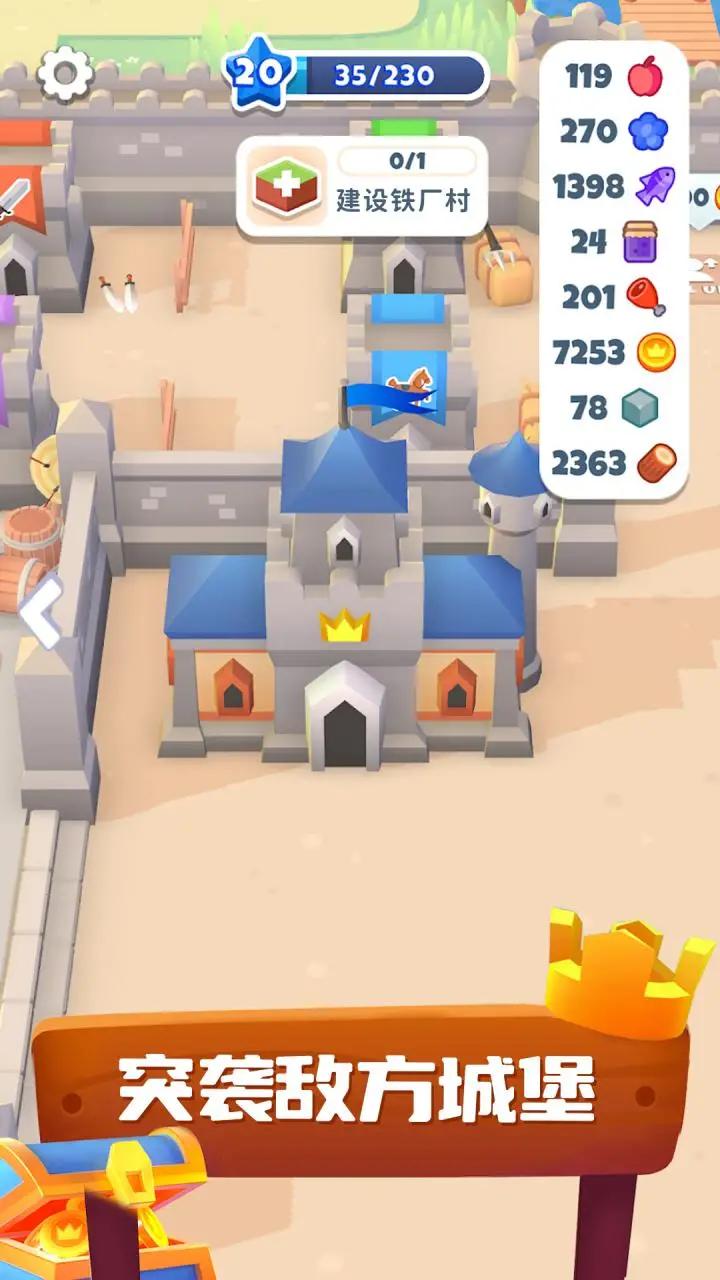 《成王败寇城堡争夺战》是一款融合了策略与塔防元素的休闲手游,玩家将扮演一位雄心勃勃的城堡领主,通过招募士兵、升级基地和指挥作战来扩张自己的领土。游戏以独特的城堡争夺为核心玩法,玩家需要制定战术,攻破敌方防线,吞并敌对势力的领地。丰富的关卡设计和多样化的敌人属性让每一场战斗都充满挑战,而简单的操作和低门槛的难度则让新手也能快速上手。无论是建立军事基地还是打造精英军队,玩家都能体验到策略与征服的乐趣。