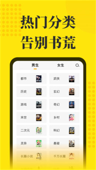 网络书城、男生小说、女生小说、热门榜单,分类应有尽有。20+细分分类,精准满足各类读者的阅读需求。