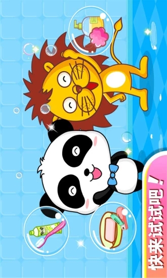 洗澡环节:这是最受小朋友欢迎的环节之一。丰富的泡泡特效和欢快的背景音乐,让洗澡变成一场欢乐派对。小朋友需要帮助动物伙伴搓洗身体,随着互动进行,泡泡会逐渐消失,露出干净的身体,最后还有闪闪发亮的小星星作为奖励,让洗澡过程充满惊喜。
