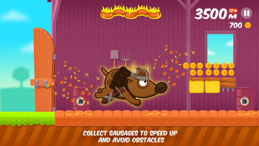 3、游戏采用自动奔跑机制,玩家只需点击屏幕右侧控制狗狗跳跃,连续点击可实现二段跳,让狗狗跳得更高;