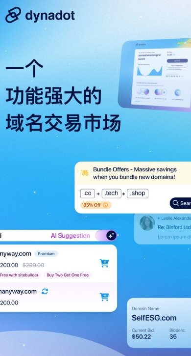 Dynadot域名交易平台是一家专业的综合性域名服务提供商,为用户提供从域名注册、交易到管理的全流程服务。通过其便捷的客户端应用,用户可以随时随地查询域名信息、完成续费或交易操作。平台内置的智能搜索功能让用户能快速找到心仪的域名,同时支持多种域名后缀选择,满足不同用户的个性化需求。无论是个人建站还是企业品牌保护,Dynadot都能提供安全可靠的域名解决方案,其简洁的操作界面和丰富的功能设置让域名管理变得轻松高效。