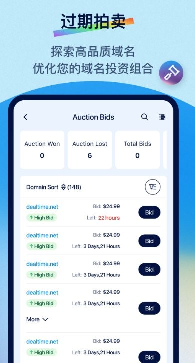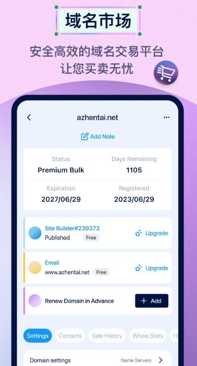 Dynadot官方应用为用户提供一站式的域名管理体验。通过这款精心设计的移动应用,您可以轻松完成域名搜索、注册、转移等操作,还能实时掌握热门域名的拍卖动态。应用内置的DNS设置工具让技术调整变得简单直观,而清晰的导航界面确保每个功能都能快速访问。特别值得一提的是,应用与网页版数据实时同步,无论您使用哪种设备,都能随时查看域名状态、参与竞拍或管理已有域名,真正实现移动办公的便利性。