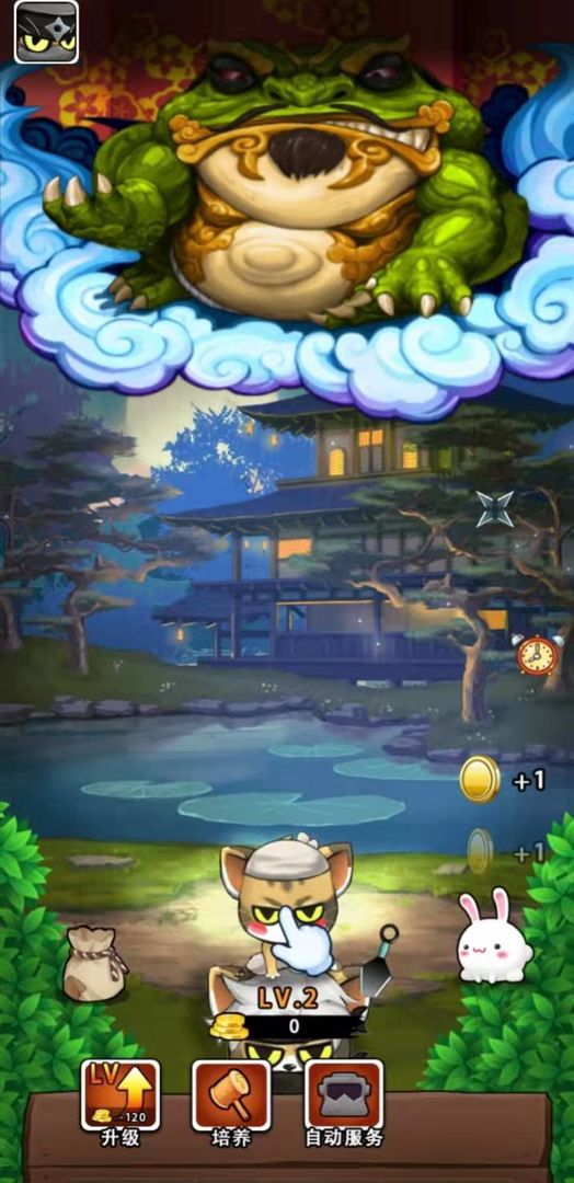 1、玩家需要不断操作自己的忍者喵进行战斗,通过升级猫咪属性来挑战更高难度的游戏任务,每完成一个关卡都能获得丰厚奖励。