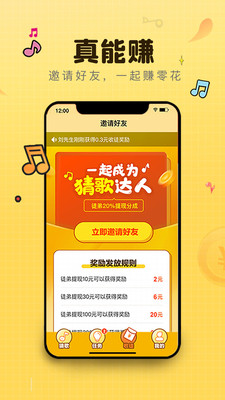 邀请好友一起加入猜歌达人,不仅能分享猜歌的乐趣,还能共同赢取奖励。平台提供完善的邀请机制,让你在享受音乐的同时轻松赚取零花钱。每次成功邀请都能获得额外奖励,让快乐与收益双丰收。