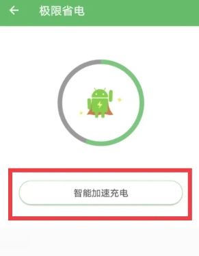 点击"极限省电"功能入口,在确认页面开启该模式后连接充电器,系统将启动倍速充电技术,同时限制非必要功能运行,实现快速充满电量的效果。