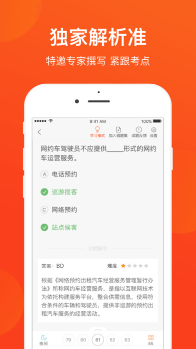 千万司机倾力推荐,专车平台推荐下载!在宁波地区网约车司机群体中享有极高口碑,被多家主流网约车平台指定为官方备考工具。用户满意度持续保持在98%以上,是名副其实的行业标杆。