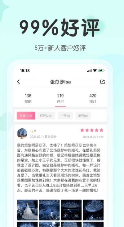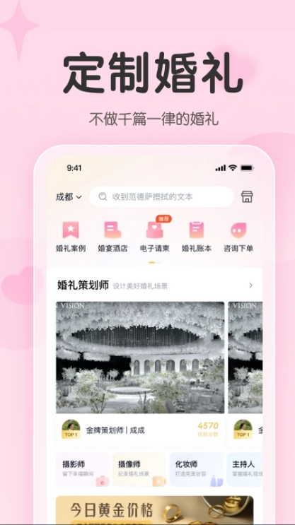 平台拥有200多位高级婚礼策划师,能够根据新人的性格特点和当地习俗,量身定制专属婚礼场景。无论是主题风格、流程设计还是细节装饰,团队都能精准把握用户需求,确保婚礼独一无二。从前期沟通到现场执行,全程提供专业建议,让每一对新人都能实现心中理想的婚礼。