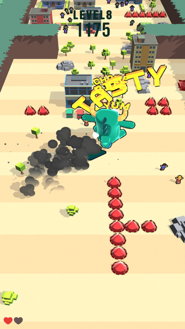 尽情释放破坏欲望的同时,别忘了收集场景中的各种能量食物。这些美味佳肴不仅能补充体力,还能让你的小怪兽获得特殊能力,比如短暂的无敌状态或破坏力加成,帮助它更快地成长壮大。