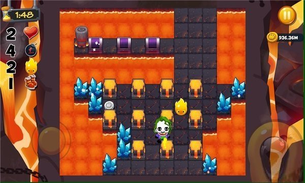 1.游戏拥有丰富多样的场景地图,每个地图都经过精心设计,路线布局和障碍物分布各不相同,为玩家带来全新的挑战体验。不同地图中还能获得独特的能量石,这些能量石可以增强炸弹威力或提供特殊能力,让游戏更具策略性。