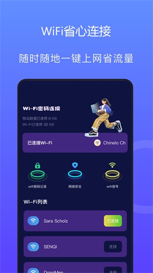 3、便捷操作:极简的用户界面设计,只需简单点击就能完成wifi搜索和连接,让上网变得轻松愉快,特别适合各类用户群体使用。