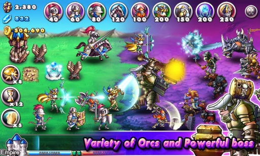 游戏融合了进攻与防守的双重玩法,玩家既要指挥军队摧毁兽人的巢穴,又要保卫自己的城堡不被攻陷;游戏中会出现各种类型的兽人敌人,包括残忍的普通兽人、强大的精英战士、快速移动的突击兵种以及几乎坚不可摧的BOSS级怪物;玩家可以自由组合骑兵、步兵、弓箭手和矛兵等不同兵种,每种兵种都有独特的属性和升级路线,合理的军队编组将大幅提升战斗效率,帮助玩家在激烈的战争中取得优势。