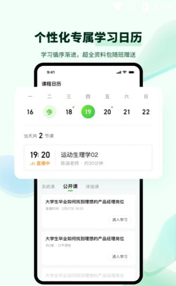 开课吧青春版的最大特色在于其全周期、全方位的服务体系。平台覆盖从大一新生到毕业生的全年级需求,包含基础学科辅导、考研/专升本系统课程、各类职业资格证书培训、留学申请指导、公职考试备考等丰富内容。特别值得一提的是其独创的"学业-职业双轨制"成长方案,不仅关注学生当下的学习成绩提升,更着眼于长远的职业发展。平台与上千家企业建立实习就业合作,定期举办名企空中宣讲会,并配备专业的职业规划师团队。此外,软件还设有个人成长专区,提供时间管理、演讲表达等软技能课程,以及摄影、编程等兴趣类内容,真正实现了"学习提升+能力拓展+职业准备"的三维成长生态。