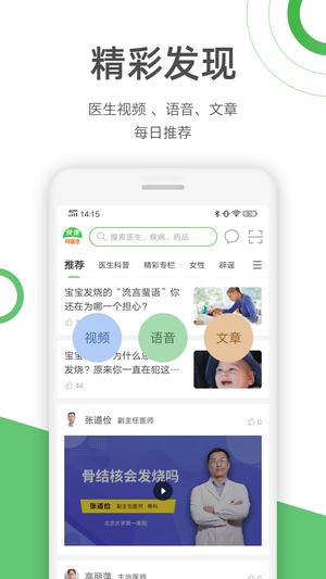 -【健康科普】平台整合了大量由专业医生制作的健康科普内容,包括图文、音频、视频等多种形式,涵盖常见疾病预防、健康生活方式等各个方面,帮助用户提升健康素养,做好疾病预防。